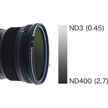 Il filtro HOYA Variable Density II (serie HD) da 52mm è un filtro a densità neutra variabile che consente di regolare lesposizione in modo continuo, offrendo una gamma da circa 1,5 fino a 9 stop (ND3ND400).